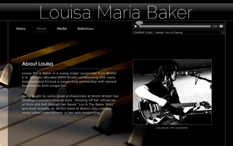 Louisa also requested a distinctive design for a mini-site for the launch of her record label BakerLou Records. She decided to discontinue the site and focus on other projects, but it's still in our archives so you can view the main site here or view the BakerLou Records micro-site here.
